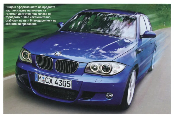 Situácia naozaj znie dramaticky… Inžinierom BMW by sa malo zablahoželať k vytvoreniu akéhosi akustického majstrovského diela, pretože motor 130i nezvoní jemne, ale vyráža dych silnými basmi z dvoch chrómových koncoviek športového výfukového systému. Implantácia veľkého motora do malého BMW si nepochybne zaslúži gratuláciu – krok, po ktorom fanúšikovia značky dlho túžili. Veď spojenie medzi autami s modro-bielou vrtuľou v znaku a radovým šesťvalcovým motorom je rovnako tradičné a nerozlučné ako spojenie medzi Mníchovom a októbrovými pivnými slávnosťami…